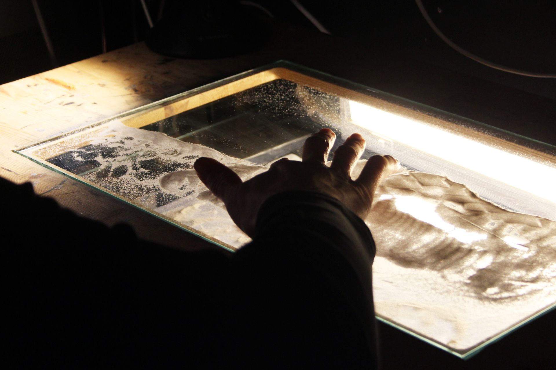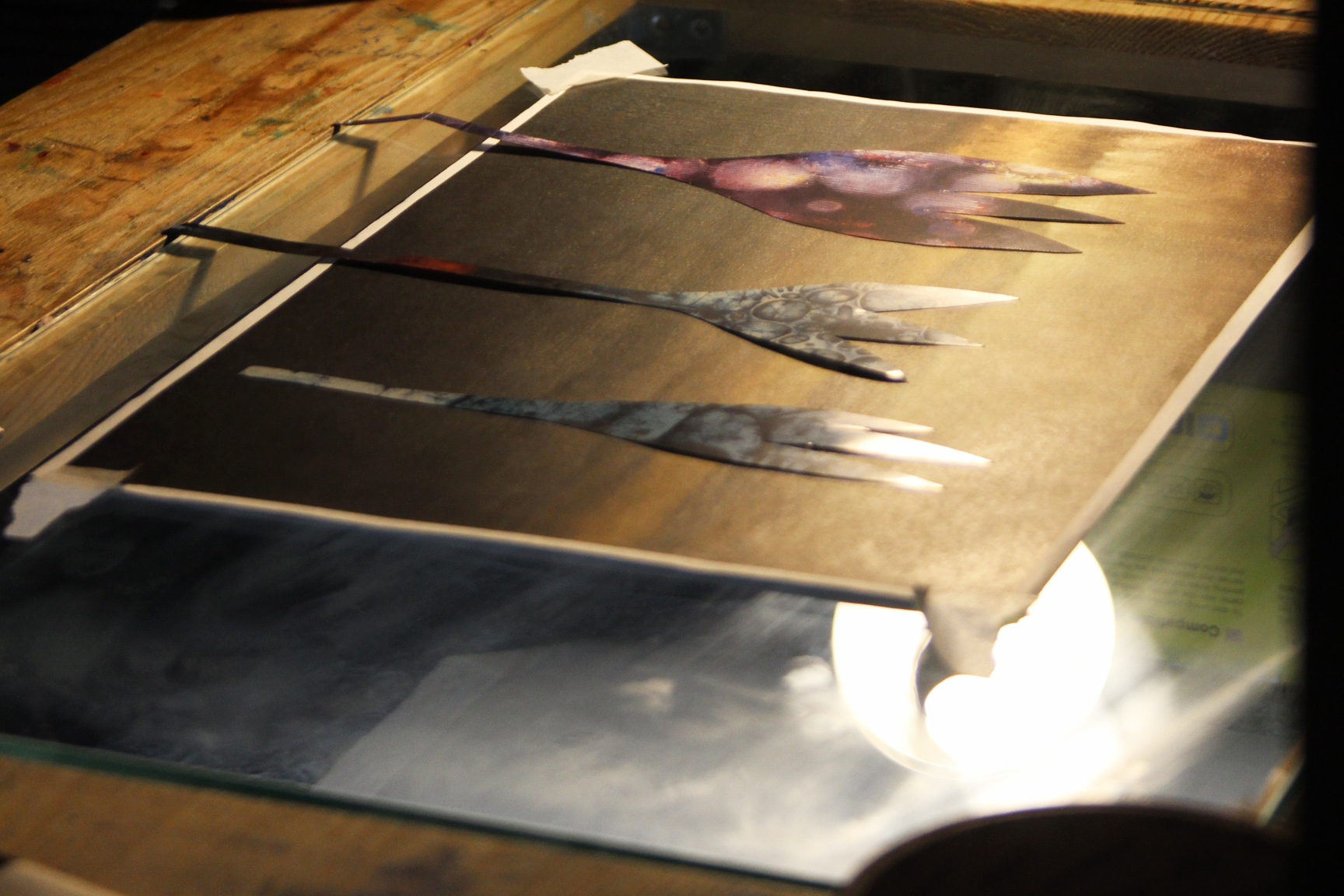 můžeme nasvítit nebo prosvítit. Budeme používat tzv. „prosvětlovák“ umožňující spodní svícení. Takový postup má své nezaměnitelné výhody (i nevýhody) a jednou z nich je zvýraznění tvaru a struktury materiálu.
